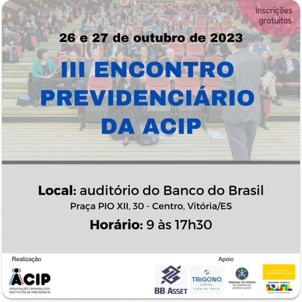 O III Encontro Previdenciário da ACIP tem por objetivo reunir os representantes dos Regimes Próprios de Previdência do Estado do Espírito Santo para debater temas importantes e recentes inerentes à agenda previdenciária de âmbito tanto estadual quanto federal.